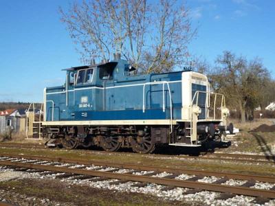 Lok der Baureihe V60 im oceanblau-beigen Farbkleid der späten 70iger Jahre